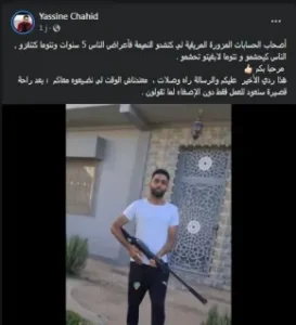 وقال شهيد في الفيديو المتداول على نطاق واسع، عبر مواقع التواصل الاجتماعي، إن ما حصل للقنينة هو نفس مصير منتقديه، وهو ما أكده كذلك في تدوينة أرفقها بصورته وهو يحمل البندقية.