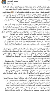 واعتبر الغلوسي في تدوينة له عبر صفحته الرسمية بفيسبوك أن خطوة الوزير ميراوي تمثل مثالا حيا لتضارب المصالح، واصفا الأمر بأنه “فضيحة بجلاجل”.