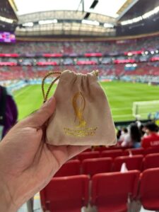 خصصت قطر هدايا تذكارية لجمهور المباراة الإفتتاحية التي تجمع المنتخب القطري بنظيره الإكوادوري عشية اليوم، بالمركب الرياضي البيت، حيث وضعت في كل مقعد بالملعب كيسا يحوي كرة قدم وعود ومسك وإسوارة يد وتمثالا لرمز مونديال قطر وقميصا، وغيرها من الهدايا.