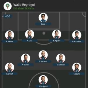 أما على مستوى الهجوم، فسيعتمد المنتخب على خدمات كل من زياش، ونصيري، وبوفال، وسيكون كل من حكيمي ومزراوي واكر وسايس على مستوى الدفاع.