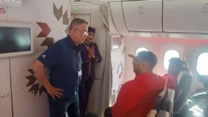ويتم نقل طاقم و لاعبي منتخب المغرب بطائرة من نوع بوينغ 787-7 تابعة للخطوط الملكية المغربية، مزينة بشعا Go Lions من الدوحة في إتجاه العاصمة الرباط .