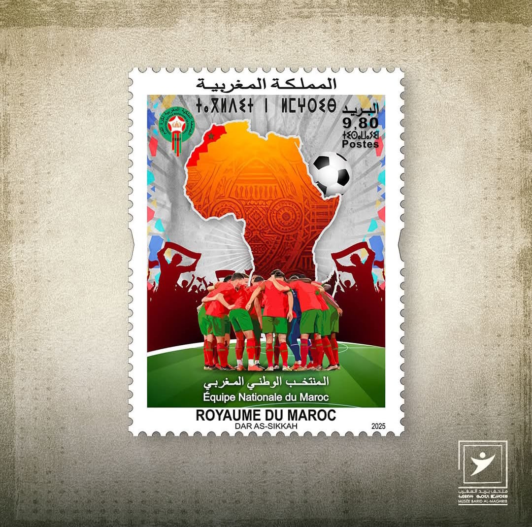 بمناسبة احتضان المملكة المغربية لنهائيات كأس أمم إفريقيا 2025، أُصدر طابع بريدي خاص يحمل عنوان «المنتخب الوطني المغربي»، في مبادرة رمزية تعكس قيم الوحدة الوطنية والفخر بالانتماء، وتؤرخ لحدث رياضي قاري بارز تحتضنه المملكة على أرضها.